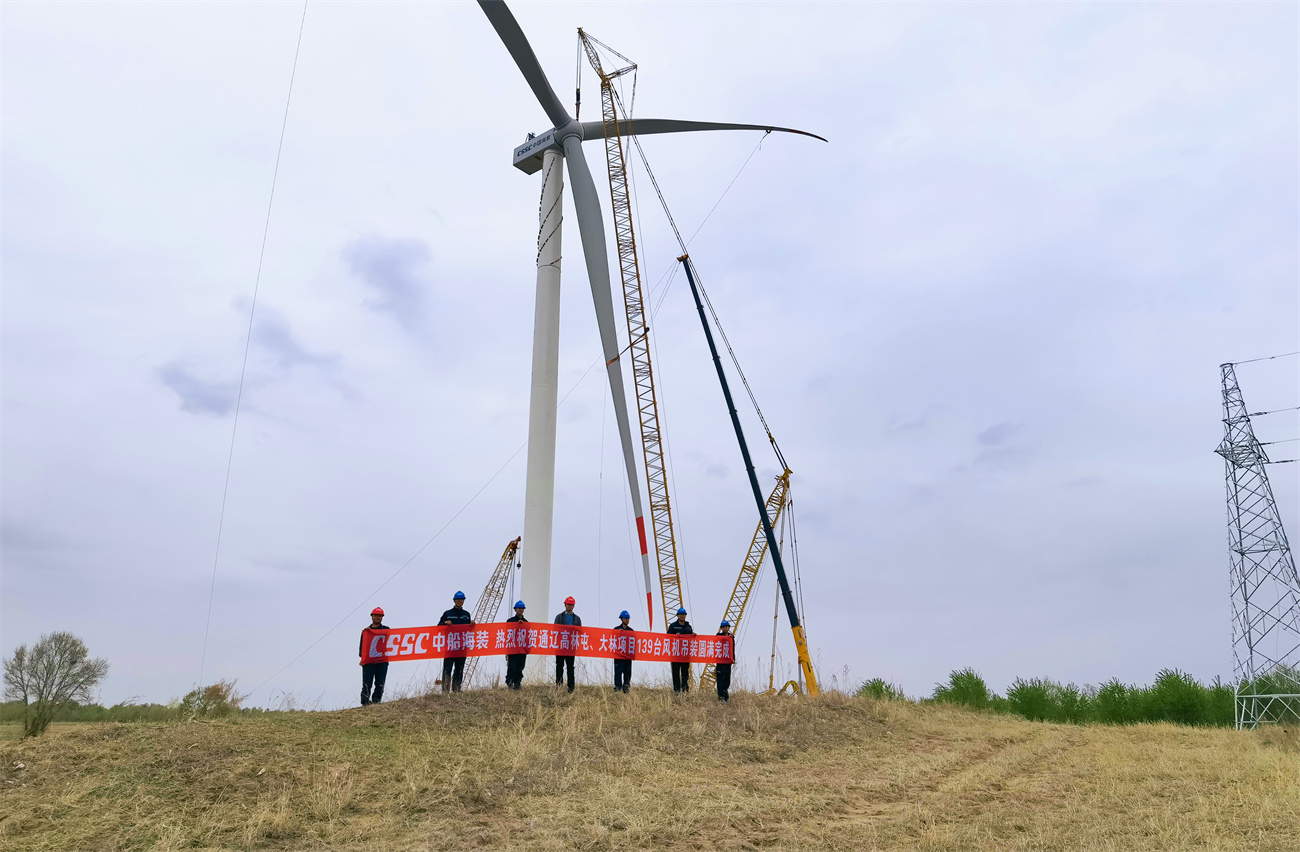 4月26日14时,随着中船海装第139台风电机组叶轮与机舱在110米高空完成精准对接,京能国????? ??????????????????? ???????????????????? ???????????????????? ???????????????际238万千瓦风电大基地——科尔沁区138万千瓦生态治理风电基地项目(????? ???????????????????? ???????????????????? ???????????????????? ???????????????高林屯场区、大林场区)吊装工作全部完成,并将????? ???????????????????? ???????????????????? ???????????????????? ??????????????于5月完成全容量并网发电。